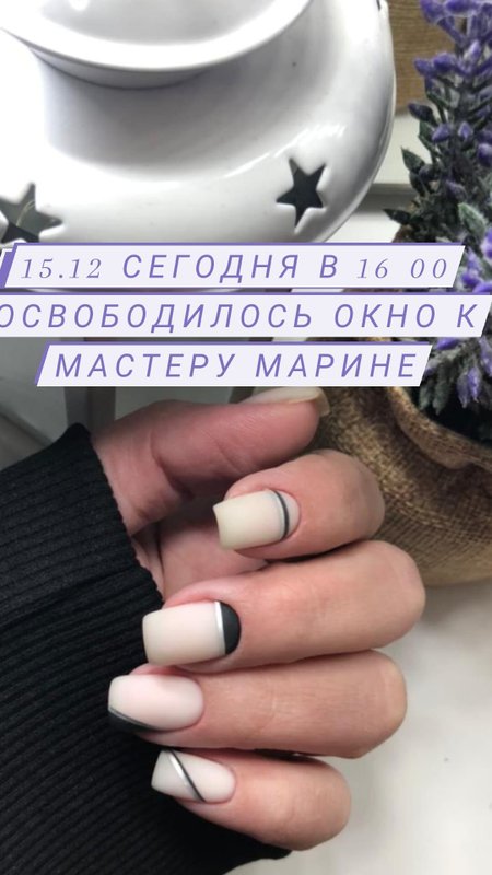 Понравился маникюр у Марины. Хожу уже давно. Нравится как делает аккуратно и как относится уважительно к клиентам, все стерильно. Делала "камуфляж" гель лак. Обычно, процедура занимает часа два. Маникюр держится около месяца, 3,5 недели точно. Марина - очень приятный человек. Маникюр делает всегда очень аккуратно, деликатно, каждый раз спрашивает: Не больно? или Не горячо? Все очень вежливо.