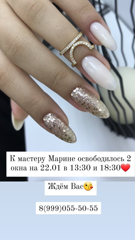 Мастер Марина очень хорошо делает маникюр с покрытием, процесс маникюра очень аккуратный! Носится покрытие достаточно хорошо, долго!
